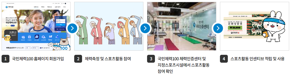 (단, 스포츠활동 인센티브 적립 및 사용을 위해 국민체력100 홈페이지 회원가입 필수)